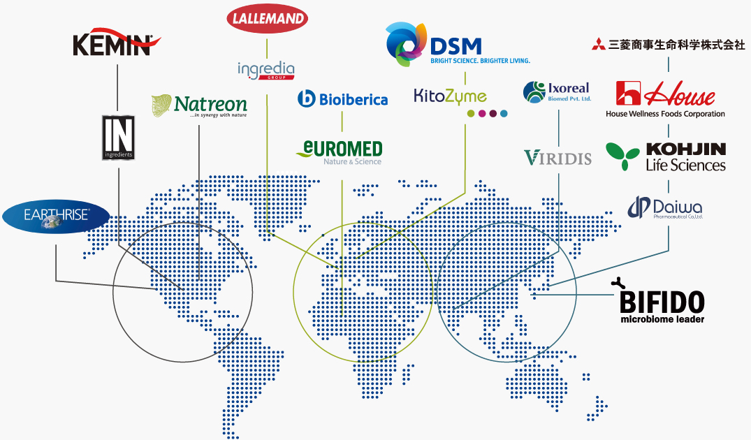 弊社創百株式会社( Chambio Co., Ltd. )は、大中華地域における健康食品業界のリーディングカンパニーの一つであり、台湾に本社を構え、上海支社を持っています。弊社は、三菱商事やヨーロッパの DSM、Lallemand、Bioiberica、EuroMed など、国際的に有名な企業と提携し、世界的に有名な機能性素材商品を販売代理しており、豊富な経験を有しています。